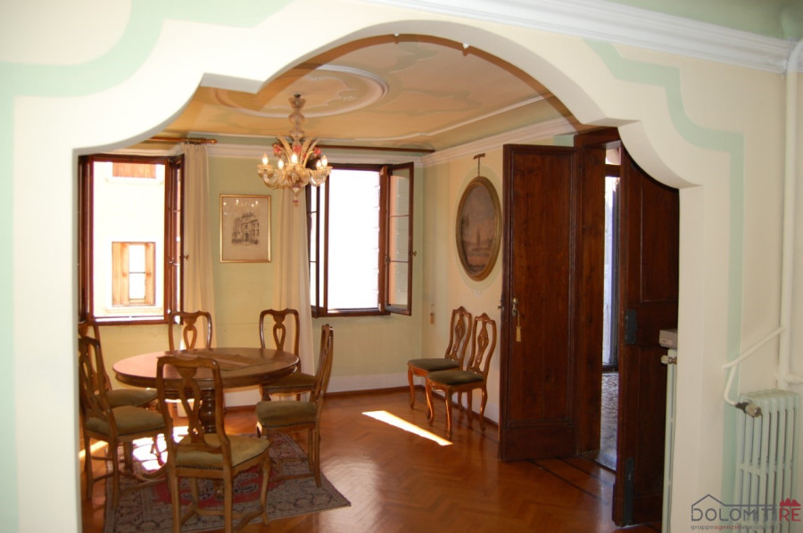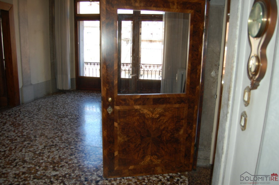 Nel centro storico di Belluno, in un antico palazzo, risalente all'incirca al '500, vendesi porzione da terra a cielo, con corte interna esclusiva, costituita da un'unità destinata ad abitazione signorile e da altra unità separata, anticamente riservata alla servitù. L'unità principale è composta al piano terra da cantine, lavanderia, centrale termica ed un bagno di servizio, al piano primo da salone con doppio affaccio sulla piazzetta a sud e sulla corte privata a nord, cucina con "larin" e zona pranzo, salotto, studio, due camere un bagno con anti-bagno, al secondo piano da altra stanza e da un bagno, mentre al piano superiore si trova una zona destinata a soffitte. L'unità secondaria, separata, si compone di un ingresso che dà direttamente sul soggiorno, di una cucina, di una camera da letto e di un bagno, oltre ad una piccola soffitta. L'immobile non è stato oggetto di interventi importanti, tuttavia si è proceduto negli anni al recupero puntuale degli stucchi, delle decorazioni dei soffitti e delle pareti, alla sistemazione dei serramenti, riportati alle caratteristiche dell'epoca di costruzione ed al ripristino dei pavimenti in legno e a "terrazzo veneziano".