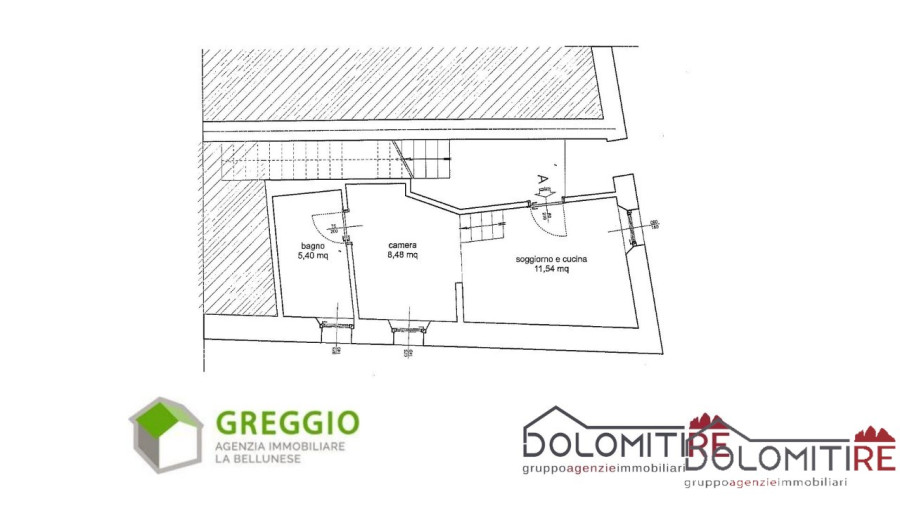 Nel centro storico di Belluno vendiamo monolocale composto da zona pranzo/cottura e camera da letto in posizione rialzata oltre a bagno finestrato e a porzione di cantina al piano seminterrato.