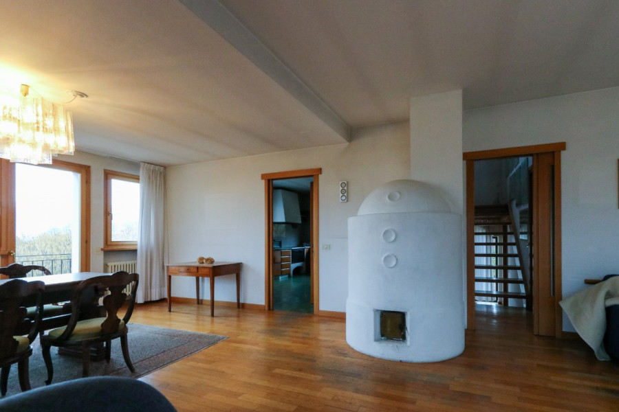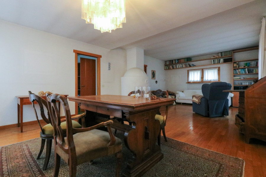 L’ingresso conduce al piano terra dove si sviluppa la zona giorno: una cucina abitabile, un ampio salone impreziosito dalla presenza della stube e con accesso diretto al giardino, ideale per godersi gli spazi all’aperto durante la bella stagione. Sullo stesso livello troviamo anche un pratico ripostiglio finestrato e un bagno di servizio.