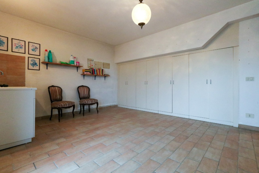 Il piano seminterrato offre ulteriori spazi funzionali: un bagno, una stanza pluriuso, una grande lavanderia/stireria e il garage.