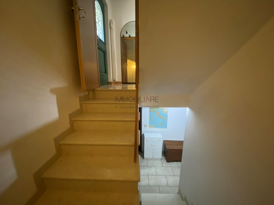 Salendo al primo piano attraverso una pregiata scala in legno si trova un ripostiglio - ufficio, l'ampia camera matrimoniale dotata di terrazzo ad angolo, camera doppia mansardata ed ulteriore camera matrimoniale con terrazzo coperto molto generoso ed affacciato sul giardino.