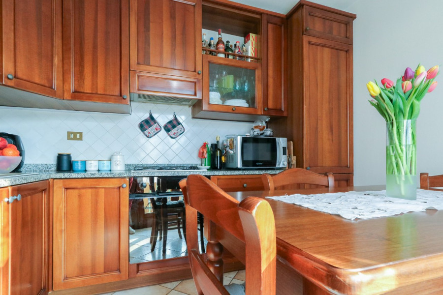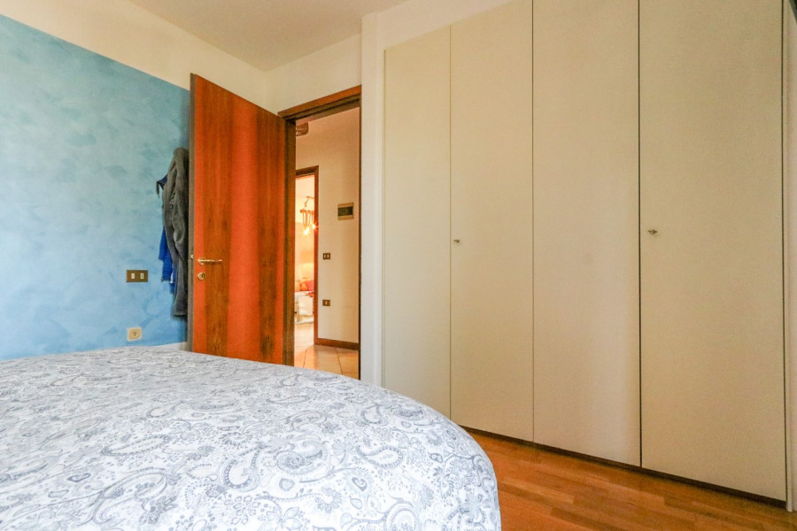 L’ingresso si apre sulla zona giorno composta da soggiorno e cucina separata, entrambi con accesso al terrazzo, perfetto per godersi un po’ di spazio all’aperto. La zona notte comprende una camera matrimoniale con terrazzo, oltre a uno studio finestrato che può essere utilizzato anche come cabina armadio. Completa l’appartamento un bagno ben organizzato.